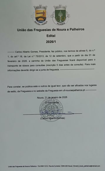 © 2026 União das Freguesias de Noura e Palheiros. Todos os direitos reservados | Termos e Condições